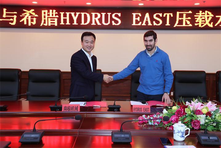10月21日,南极机械与希腊Hydrus East公司倪氏压载水管理系统项目合作签约仪式在公司一号会议室举行,倪建峰总经理和乔治先生分别作为双方全权代表出席了仪式。签约成功后,双方将通力合作,在希腊地区展开倪氏压载水管理设备的市场推广。
