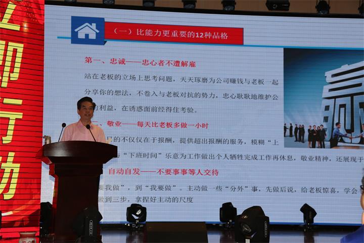 在讲座后半部分,董事长讲道,在职场中,人品比能力更重要,人品是人真正的最高学历。他结合多个精彩小故事及自身企业管理经验,向大家传授了“比能力更重要的12种品格”、“企业管理的三重境界”、“成在经营、败在管理、错在不学”、“和正确的人在一起”及“一个团队必备的5个要素”等重要知识点。