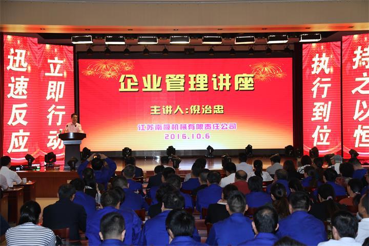 10月6日,南极机械在行政楼9楼报告厅举办企业管理内部讲座,董事长倪治忠亲自主讲,讲座的主题分为两个部分:强化执行力与修养人品。讲座由倪建峰总经理主持,公司全体行管线人员聆听了此次讲座。