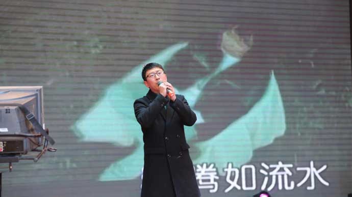 演出最后环节,倪建峰总经理和倪治忠董事长先后登台献唱,倪建峰总经理为大家带来了一首优美深情的《你到底爱谁》,寓意全体员工及家属是他心中最长久的牵挂。最后,倪治忠董事长亲切登台,代表公司董事会和家人,向全体南极员工拜年,祝愿大家新春快乐、平安吉祥、阖家幸福、万事如意!接着,董事长为大家倾情演唱了一首《牡丹之歌》,寓意南极的发展将日新月异、蒸蒸日上,也表达了对全体员工事业出彩、生活幸福的美好祝愿。南极机械2018年新春团拜会至此圆满落幕。